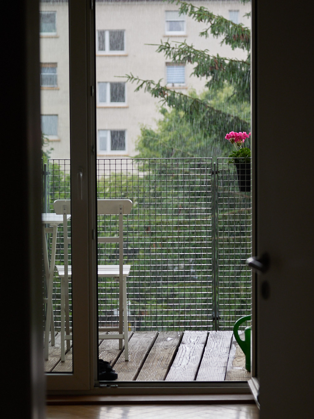 Wenige Minuten später schüttet es wie aus Eimern. Wenn man es trocken hat und schon was erlebt hat, ist das richtig schön!