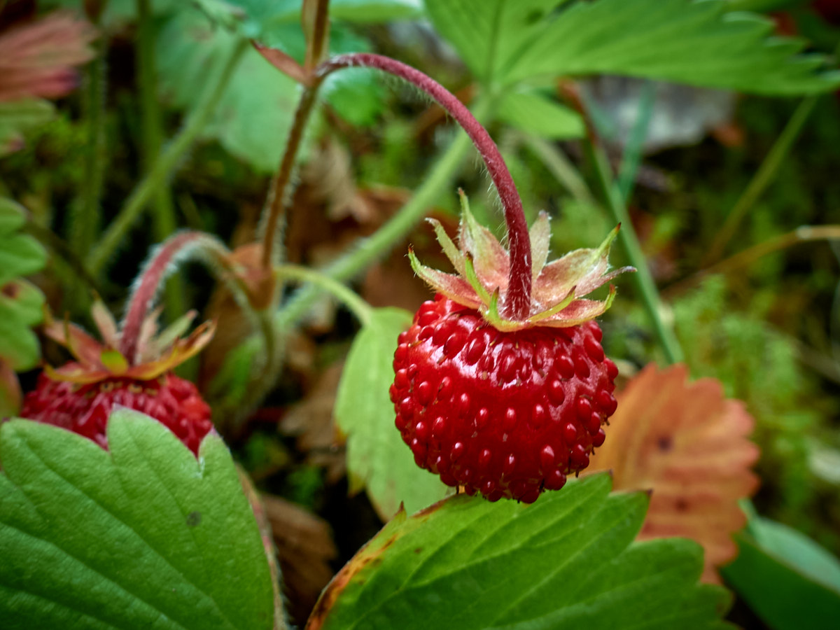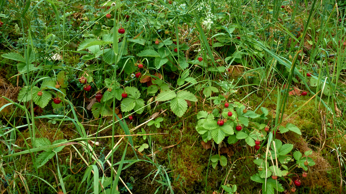 Direkt neben dem Fahrweg wachsen sogar Walderdbeeren an der Böschung. Ein unverhoffter Snack!
