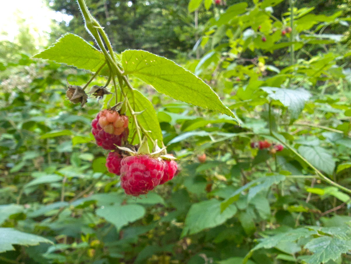 In Achern rechts ab nach Sasbachwalden, wieder den Berg hoch. Diesen Teil kenne ich ja noch von Sonntag. Kurz vor der B500 fahre ich rechts ran und mache ein Päuschen. Schön hier! Und noch besser: Ich stehe neben leckeren Waldhimbeeren und unzähligen Heidelbeersträuchern. Das kann ich natürlich nicht übergehen, und so genieße ich ein kleines zweites Frühstück.