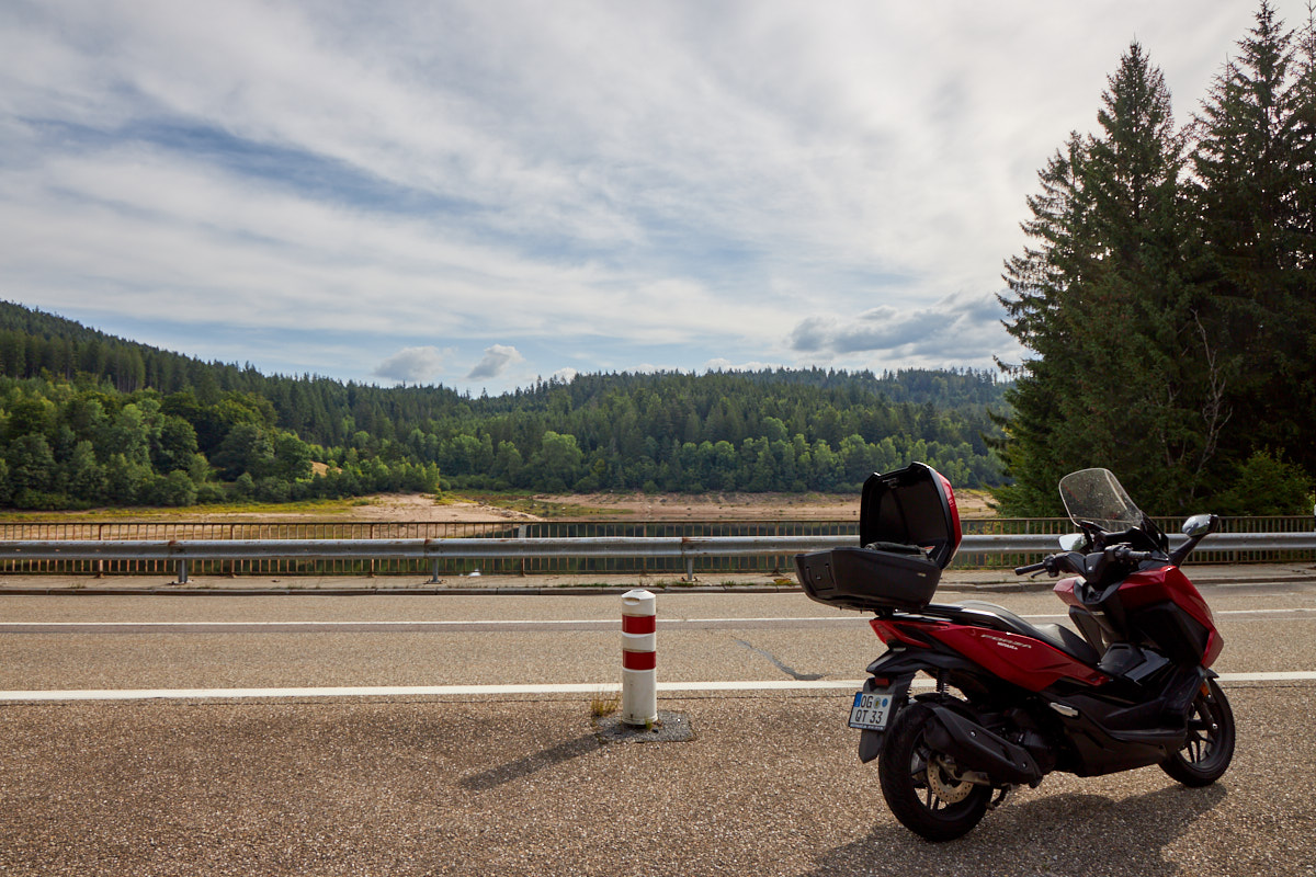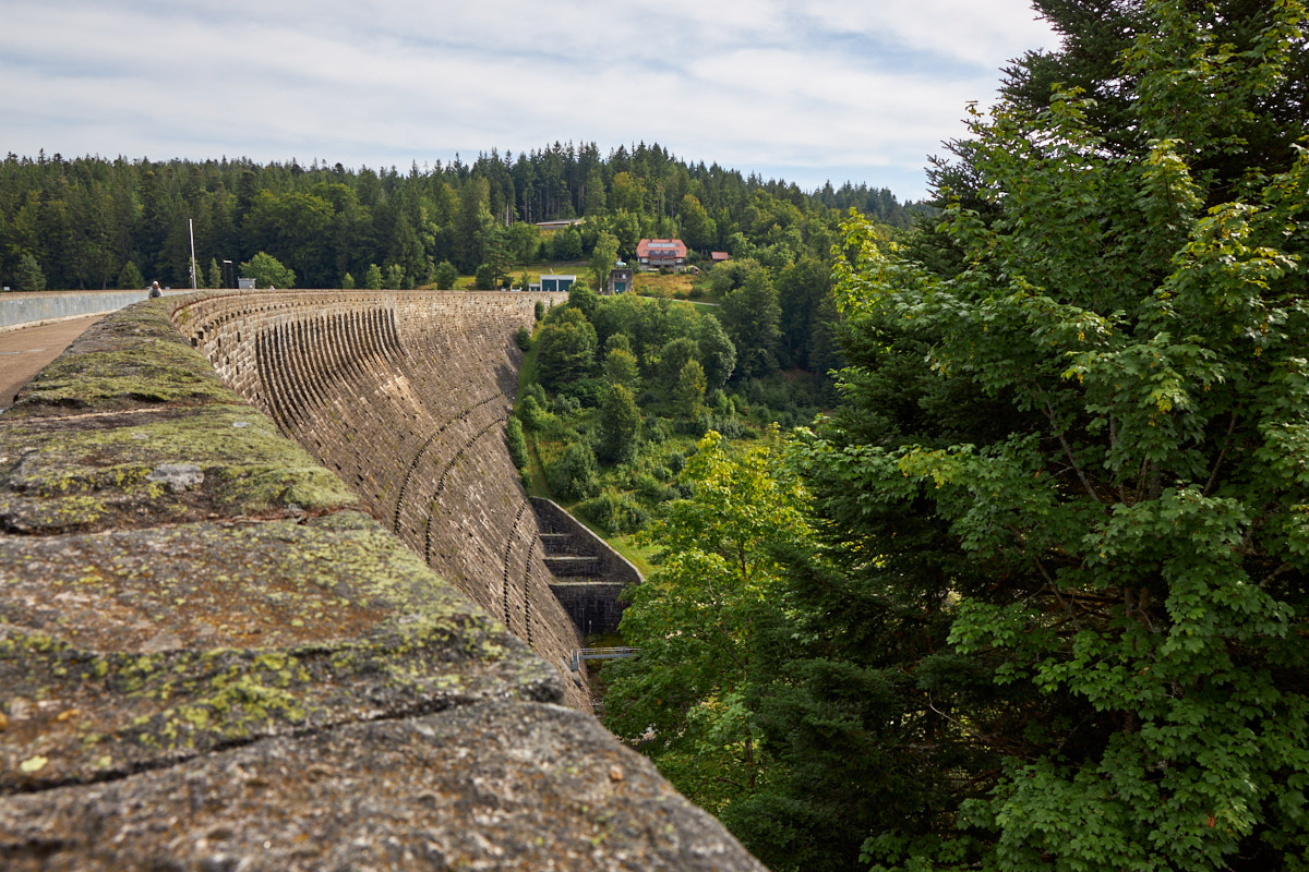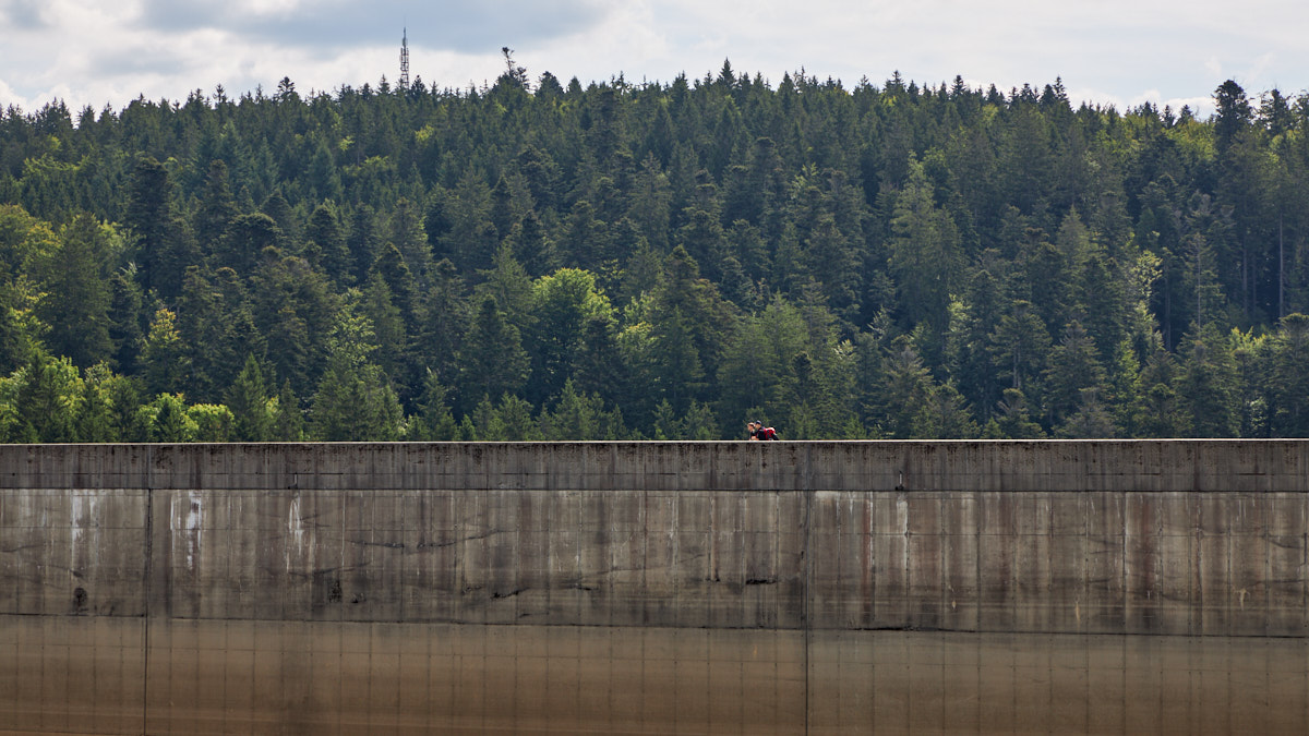 Ich hab ein breites Grinsen im Gesicht, als ich weiter fahre. Die Landschaft, das Dahingleiten, das macht so viel Freude! Ein bisschen wie Skifahren, wenn es so richtig gut läuft. Zu meiner Überraschung stoße ich kurz drauf wieder auf eine Talsperre. Diesmal ist es die Murgtalsperre. Interessanterweise ist hier die Staumauer auf der anderen Seite als vorhin. Ich fahre also plötzlich flussaufwärts. Die Topografie ist etwas unübersichtlich hier oben.