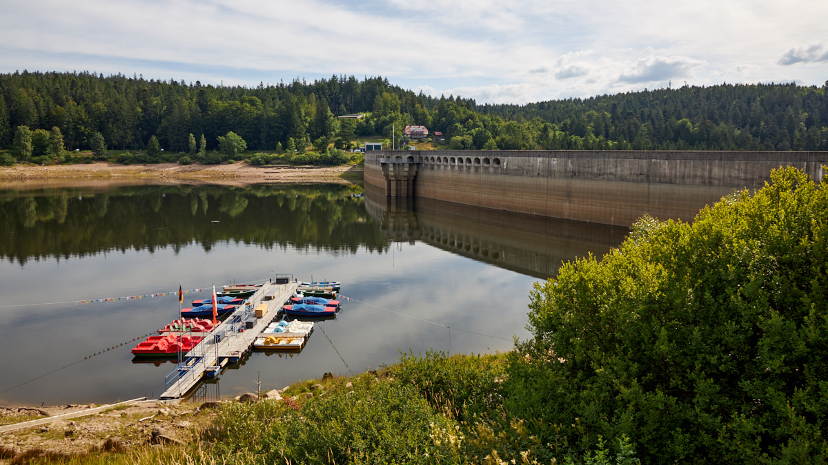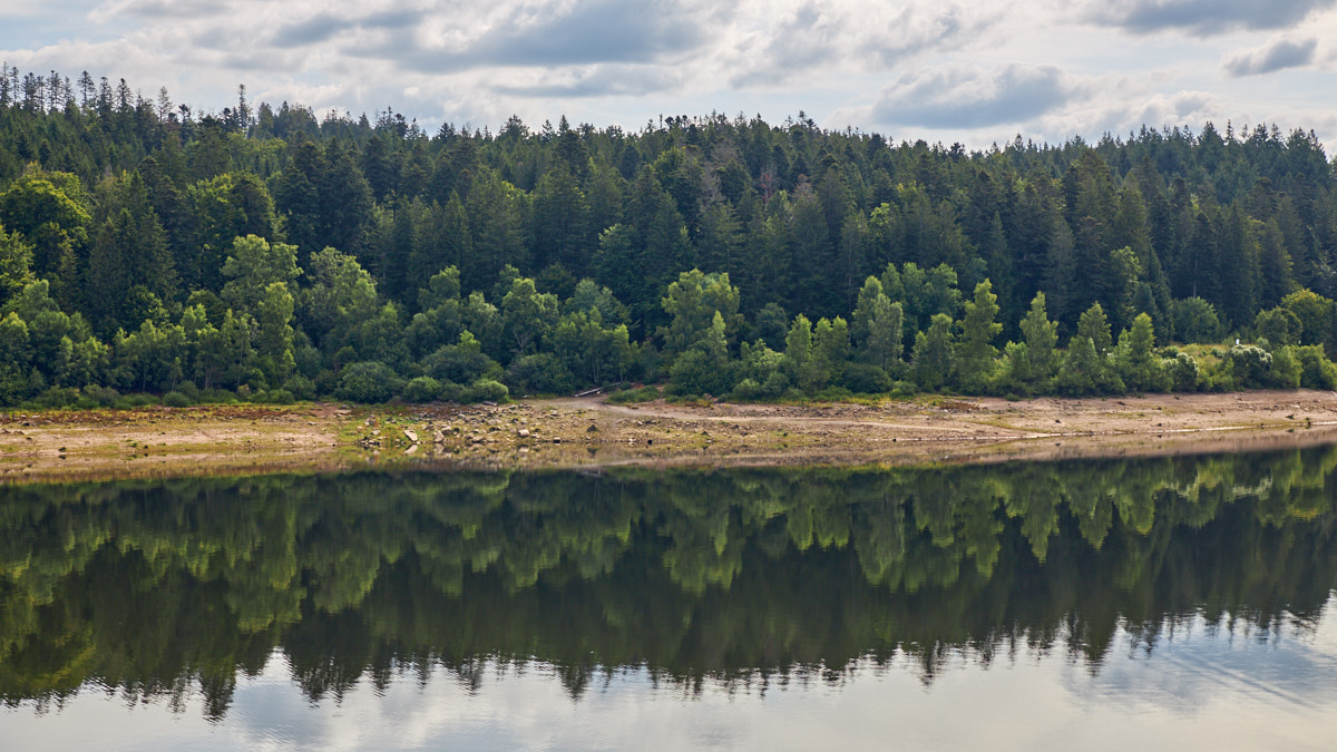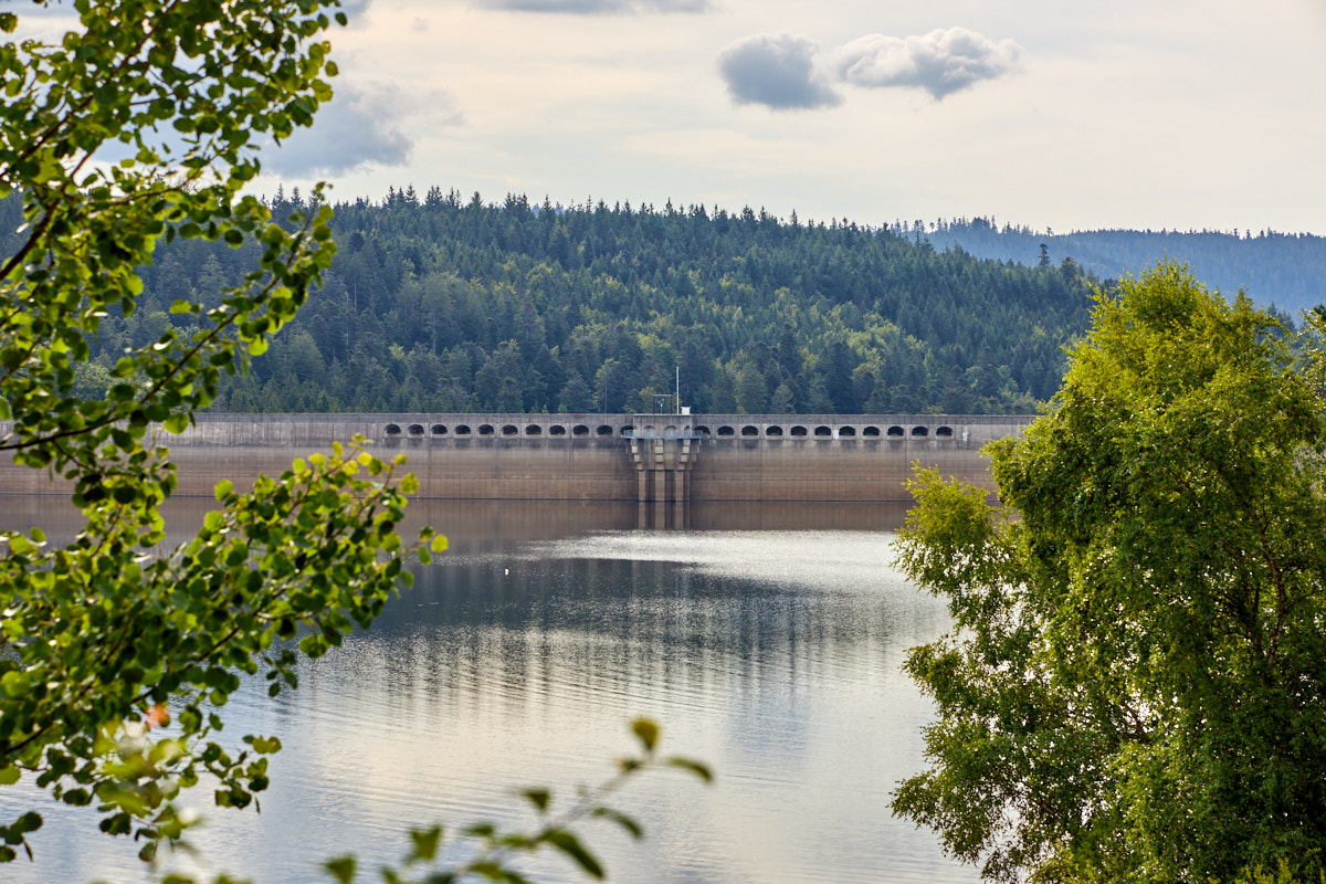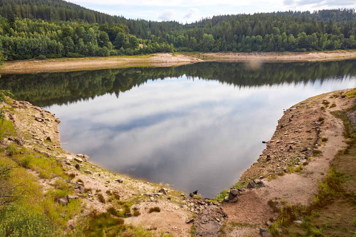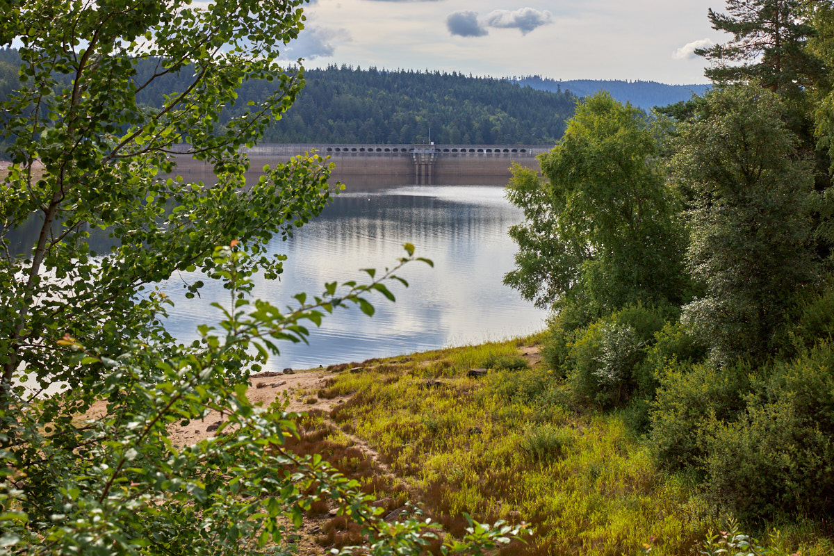 Dann geht es wieder in den Wald. Als er sich das nächste mal lichtet, steht links schon das Wasser des Stausees. Es ist nicht mehr weit.