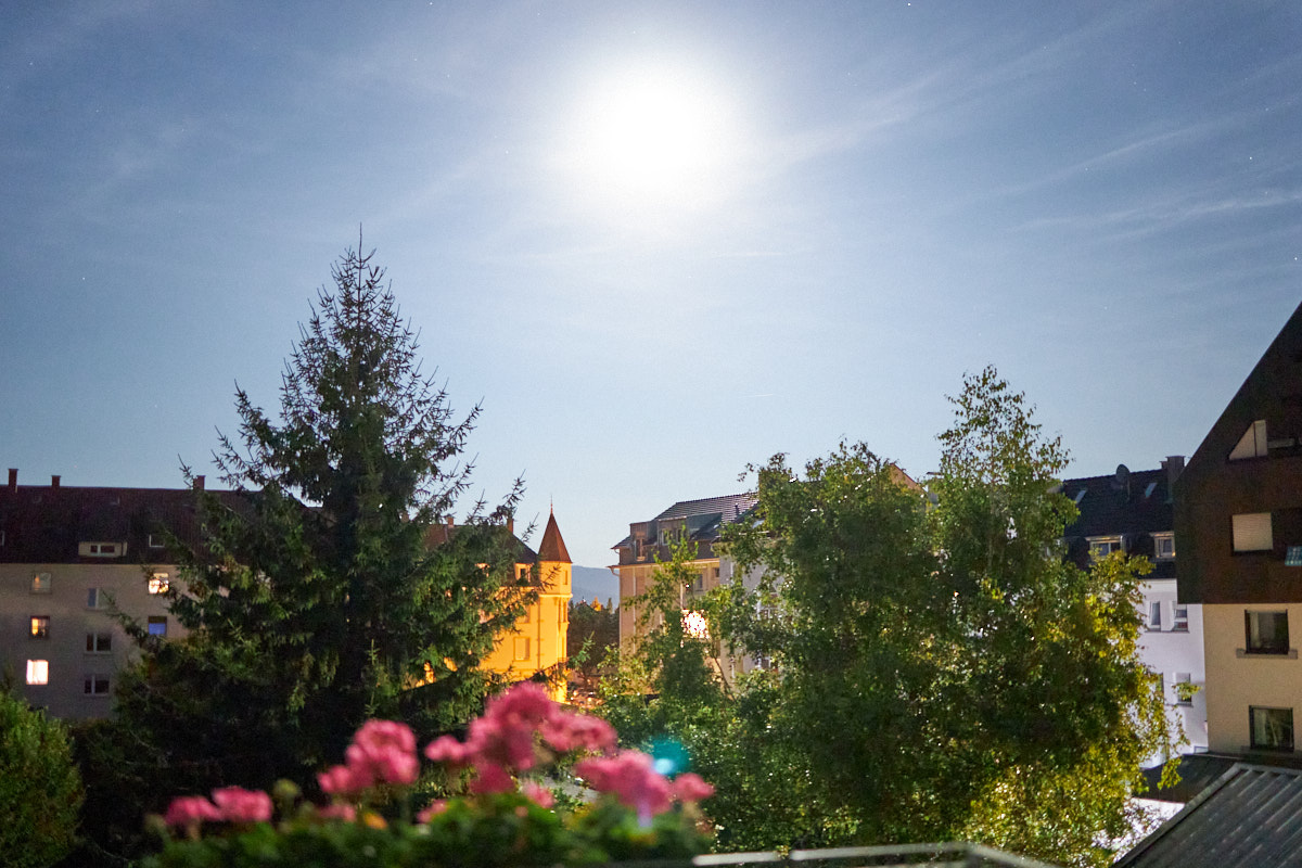 Der Blick von meinem Balkon. Ein Motiv, das ich inzwischen sehr gut kenne. Seit eineinhalb Wochen hänge ich jetzt wieder hier in der Wohnung rum.