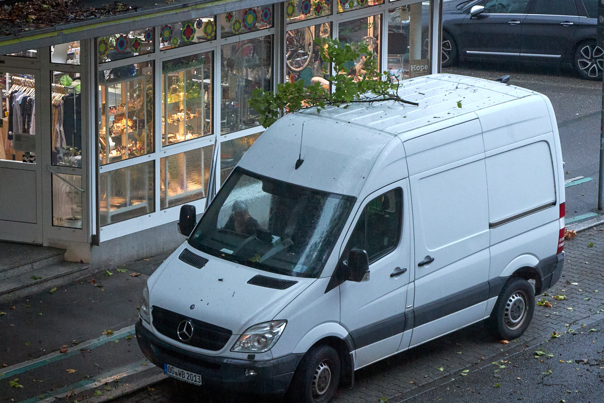 Während ich so darüber nachsinne, knallt es draußen laut. Ein Gewitter. Es ist dunkel, eine Regenwand rauscht durch die Straßen und Baumkronen und setzt alles unter Wasser. Eine Sturmbö schleudert innerhalb von Sekunden Äste auf die Fahrbahn herab. Menschen flüchten in Autos und unter Vordächer.