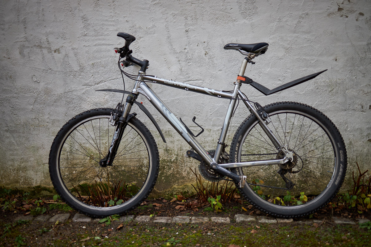 Einige Tage später mache ich mich an das Mountainbike. Das steht ja schon genauso lange rum. Auch hier abwischen, Reifen aufpumpen. Die Schaltung ist ausgeleiert, manche Gänge sind nicht mehr erreichbar. Das müsste man flicken.