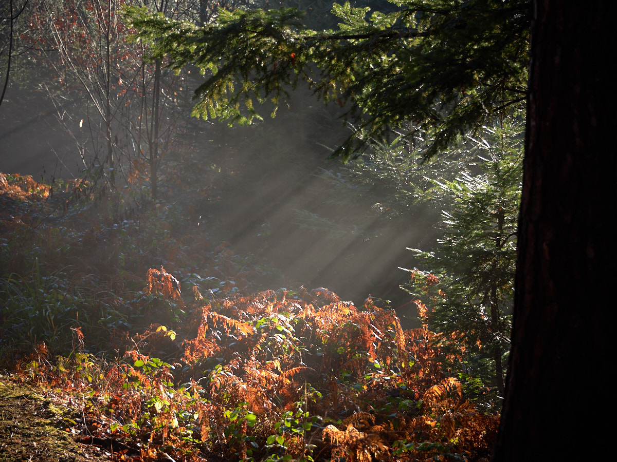 Die Sonne ist die gleiche, aber wie sehr sich der Wald verändert hat! Es ist fast kein Laub mehr auf den Bäumen. Eine ganz andere Stimmung. Doch fast genauso schön!